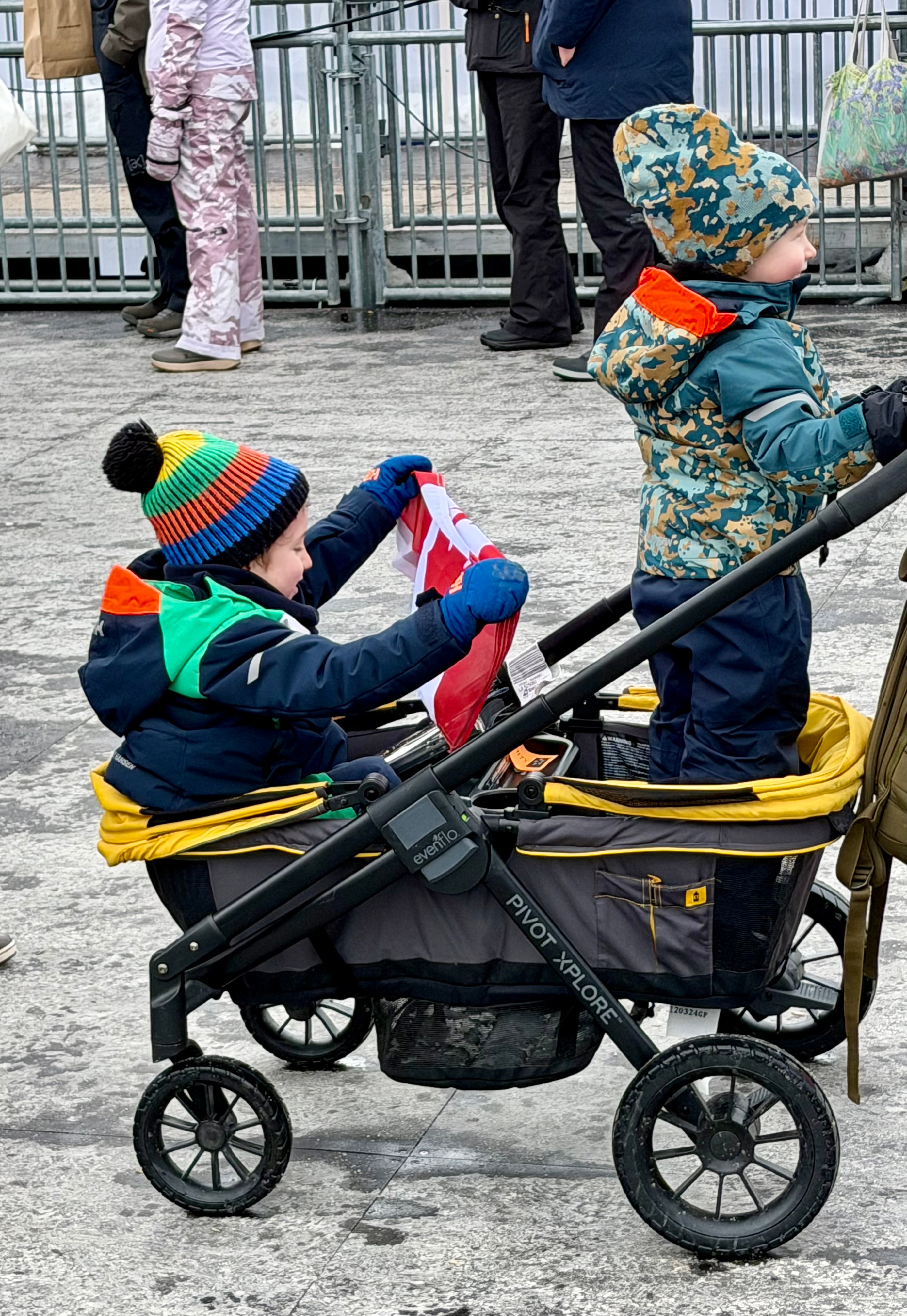 Today’s event is men’s freeski slopestyle finals. It reminds me a bit of skateboarding, except on skis. I recorded several videos either directly or on the video screen. The competition consists of three runs for each of the 12 competitors. The three highest scores will win the medals. We are excited that three Americans have qualified. American Alex Hall takes second for the silver medal! The medal presentation is in front of where we are standing.