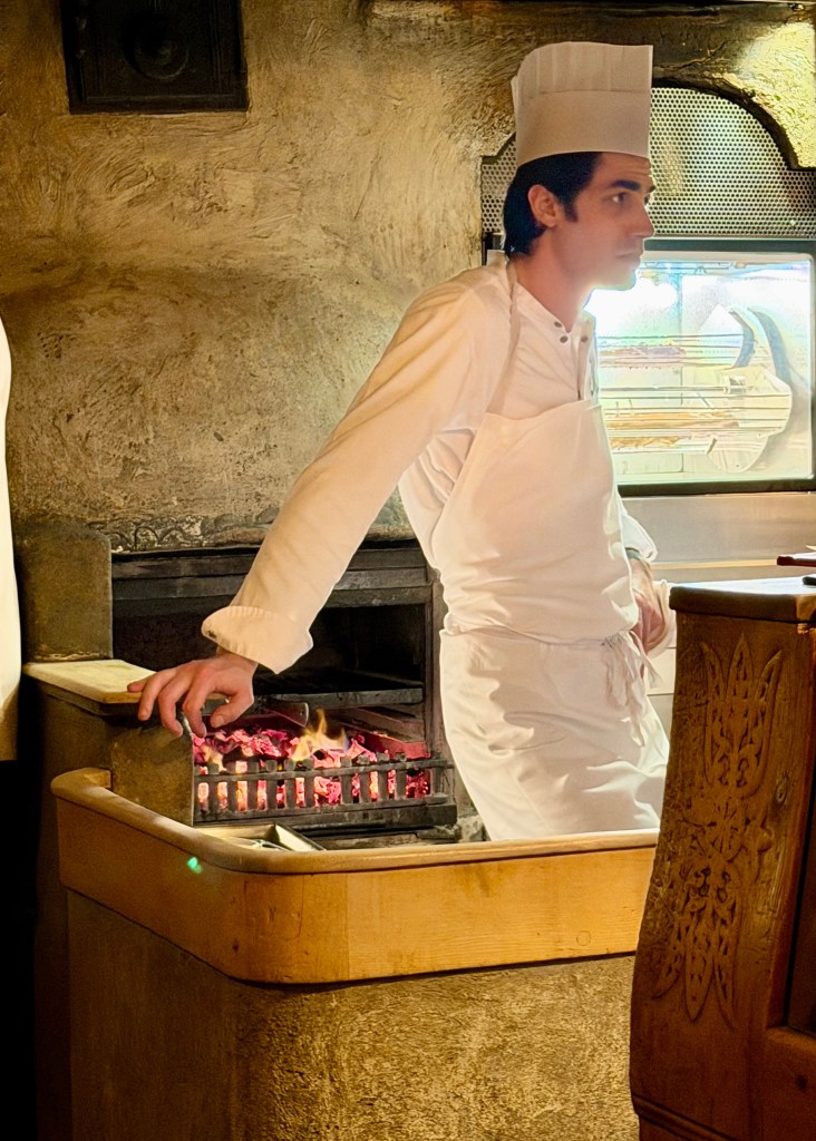 Dinner is at an offsite hotel restaurant, “Chesa Veglis.” Paige and I had great fun with the tiny bar and the attendant, teaching him how to make the “DuncanTini.” He kept my card; who knows, I might return. Again, the food was excellent. I had a pasta made from barley with potatoes and cabbage. A great ending to another great day!